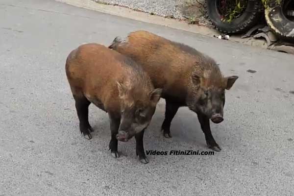 Porcos selvagens passeando calmamente pelas ruas de Banguecoque, Tailândia... Obéliiiix...